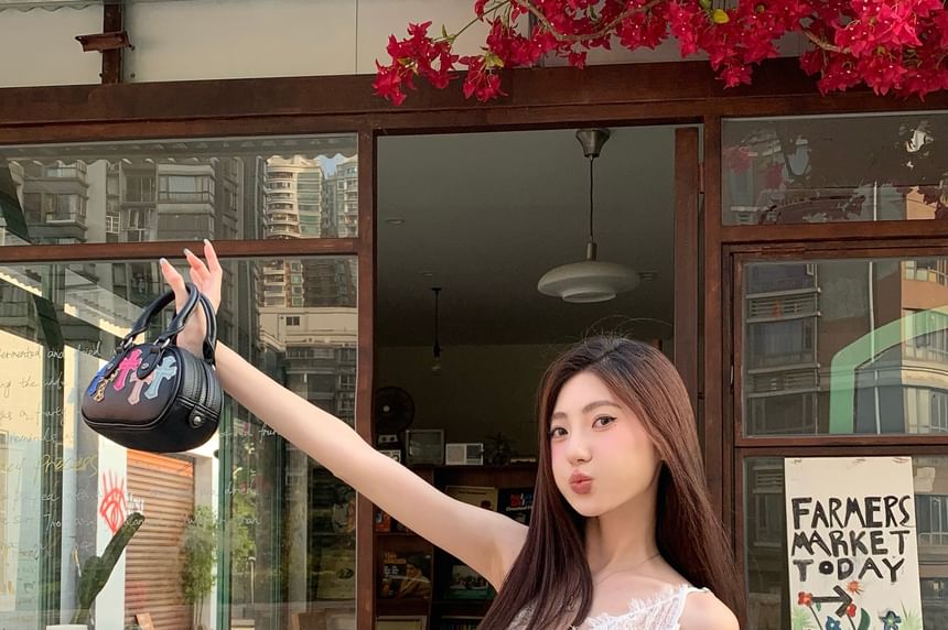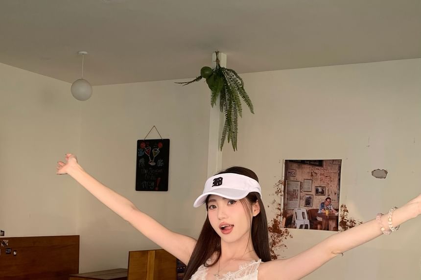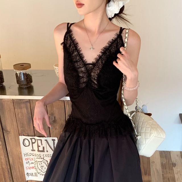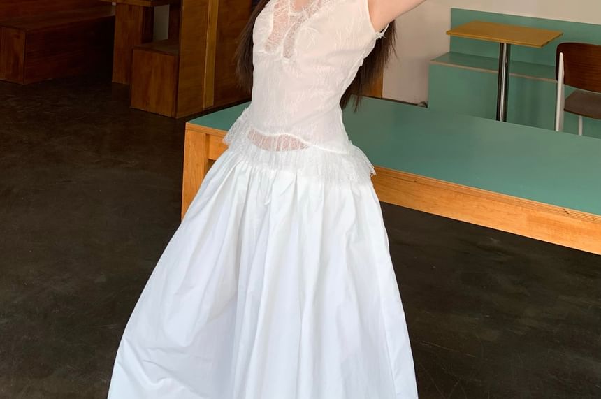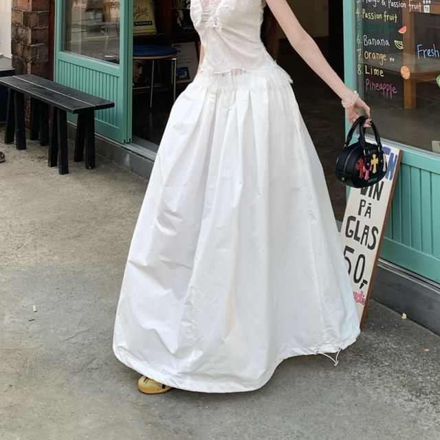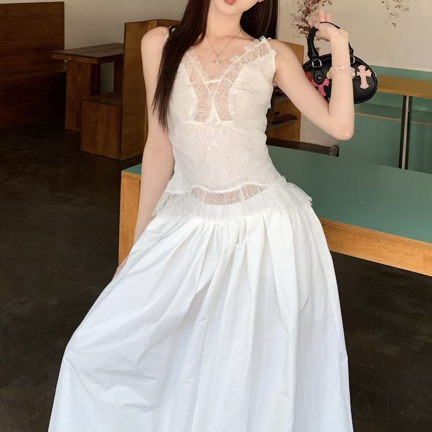 Plain Lace Panel Slim Fit Tank Top / High Rise Maxi A-Line Skirt
