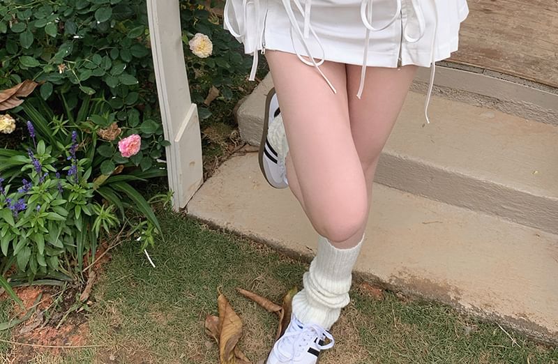 Plain Tie Front Ruched Panel Cami Top / High Rise Pleated Mini A-Line Skirt