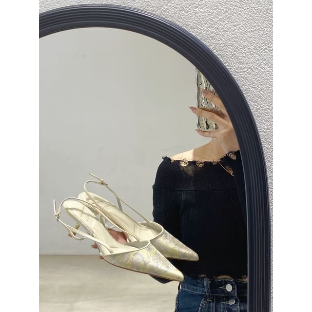 Pointed Toe Slingback Jacquard Kitten Heel Pumps