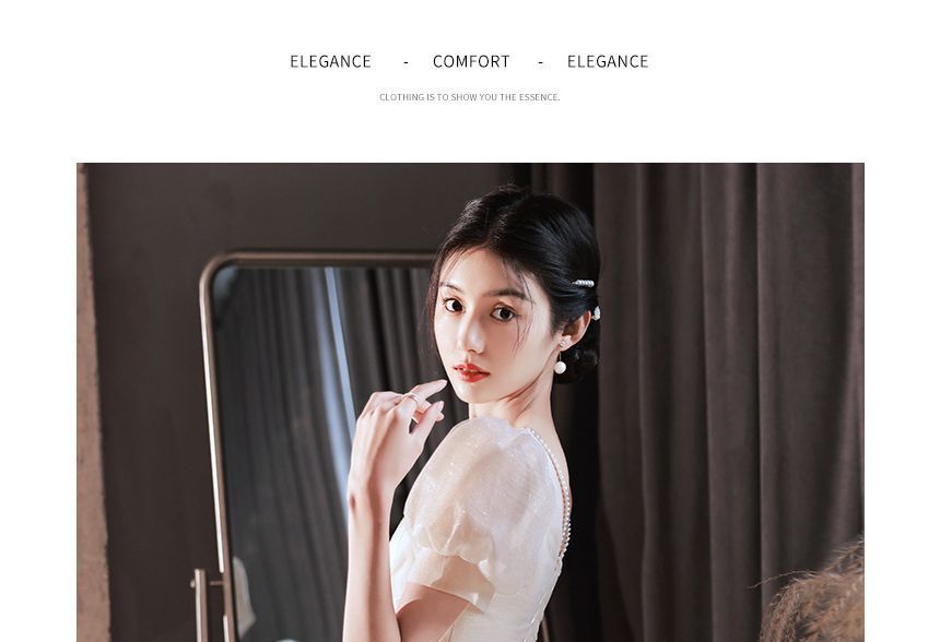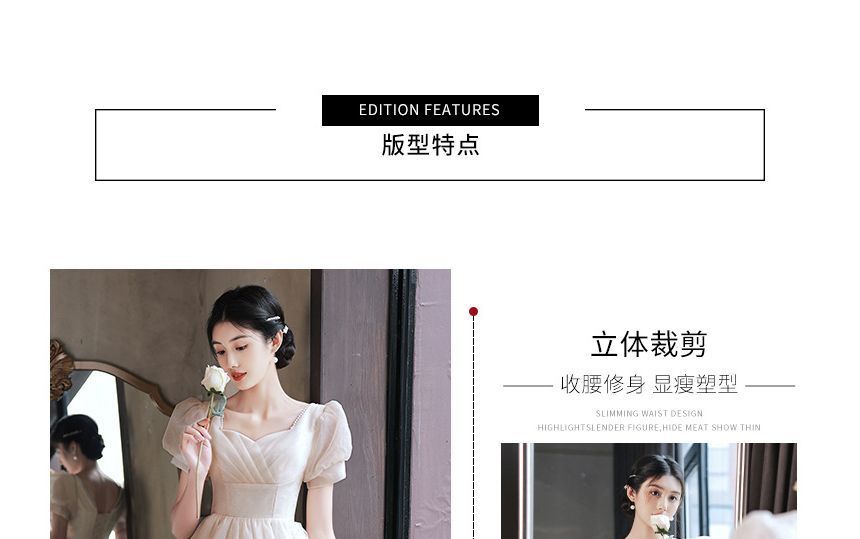 Puff Sleeve Sweetheart Neck Plain Ruched Mesh A-Line Cocktail Dress