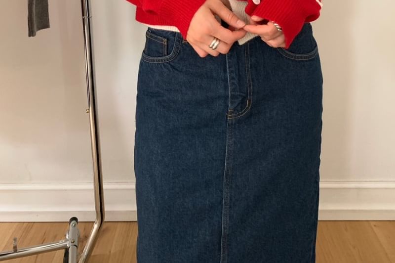 Round Neck Lettering Embroidered Mock Two Piece Cardigan