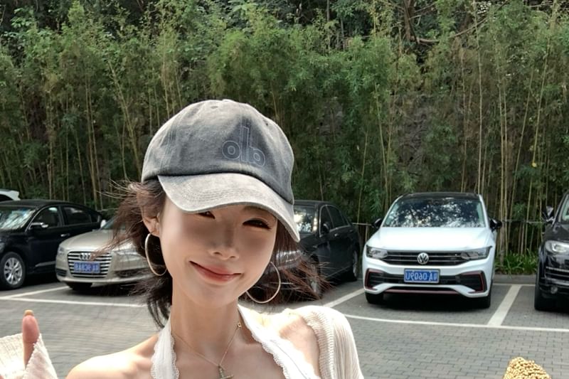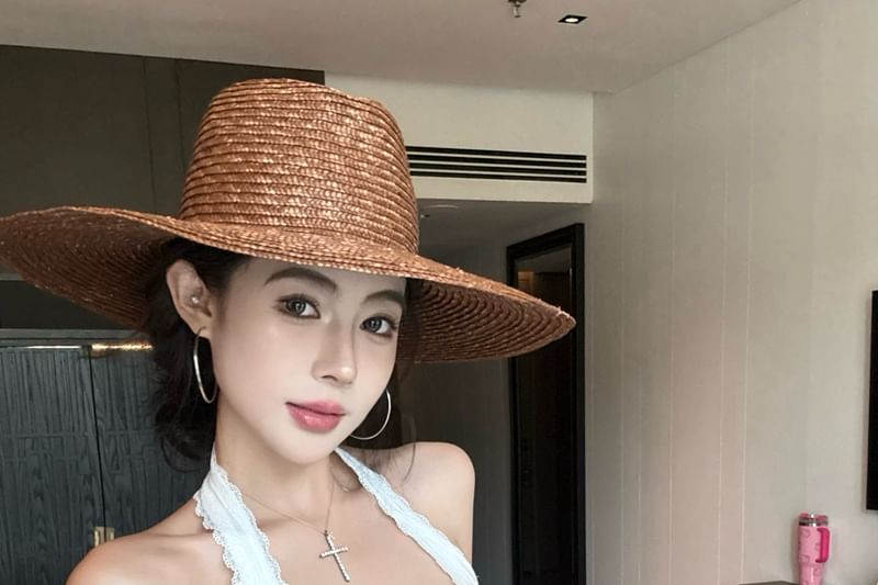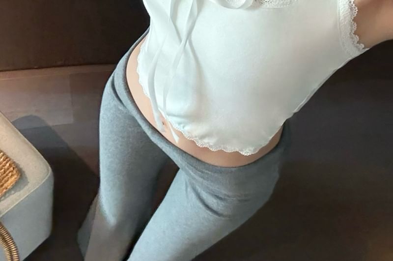 Scoop Neck Plain Bow Lace Trim Cropped Halter Top