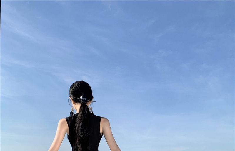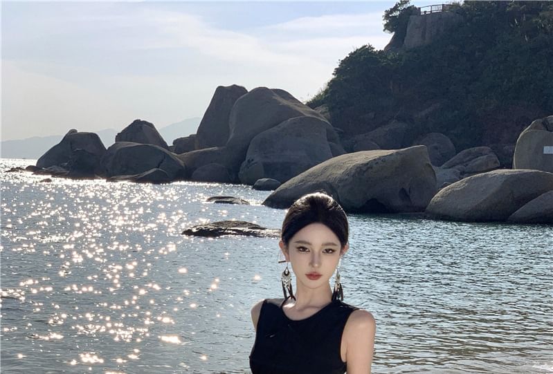 Sleeveless Crewneck Two Tone Maxi A-Line Dress