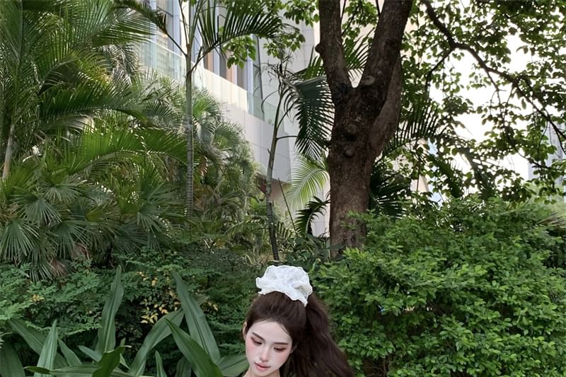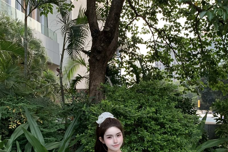 Sleeveless One Shoulder Plain Tie-Up Top / Drawstring Waist Plain Mini A-Line Skirt