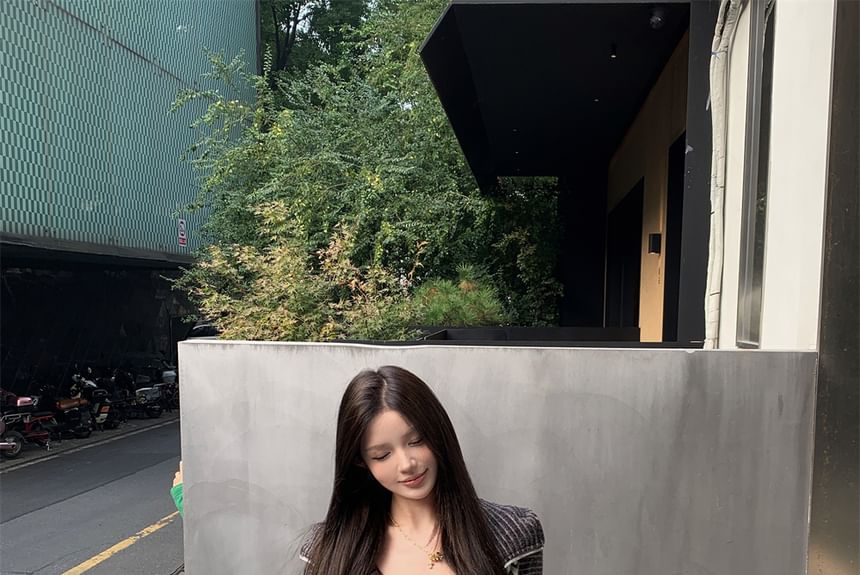 Striped Devil Horn Accent Crop Zip Hoodie / Drawstring Waist Bootcut Sweatpants
