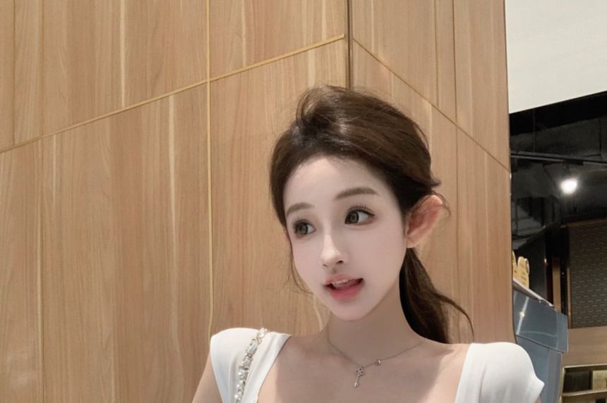 Skirt Waist Print Sweet Pleated High T-Shirt