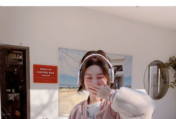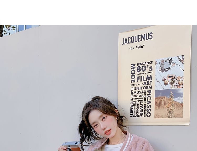 Two-Tone Fluffy Button-Up Baseball Jacket
