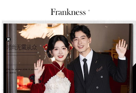 Dress Pearl Jacquard Chinese Faux Wedding Puff-Sleeve Floral A-Line