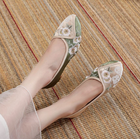 Embroidered Flower Flats