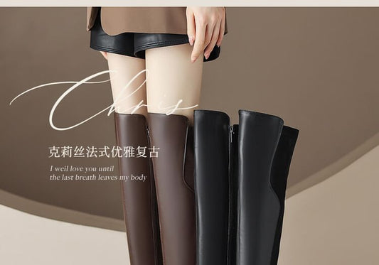 Bottes hautes au genou avec empiècement en maille et plateforme