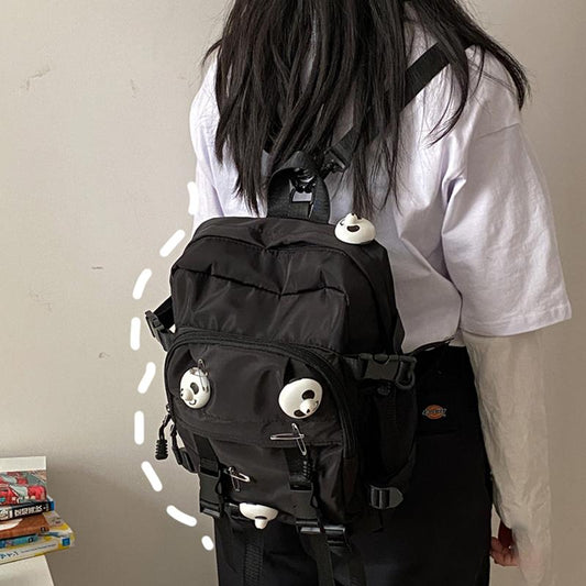 Sac à dos à bandoulière avec épingle à panda noir
