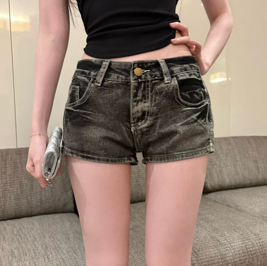 Off Shoulder Plain Sweater / Collared Panel Fluffy Zip Jacket / Mid Rise Washed Fluffy Trim Denim Shorts