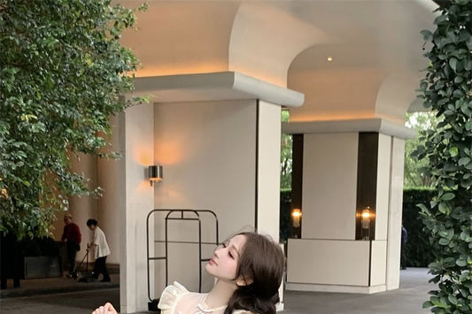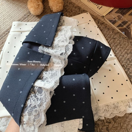 Long-Sleeve Scoop Neck Plain Blouse / High Rise Plain Lace Midi A-Line Skirt / Set