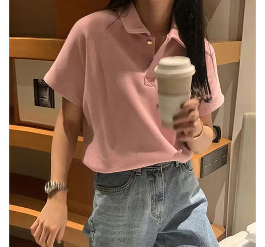 Short-Sleeve Crew Neck Plain Open Back Blouse