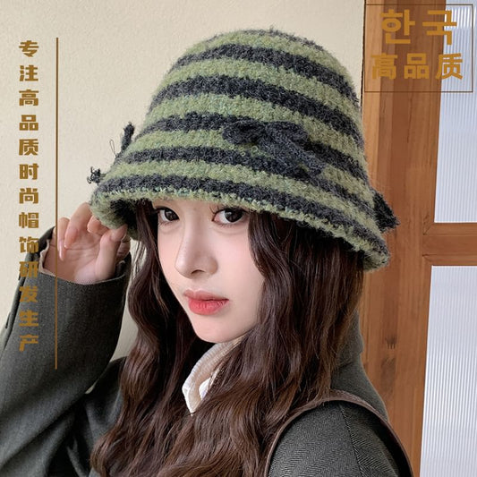 Ribbon Faux Pearl Chenille Applique Knit Beanie