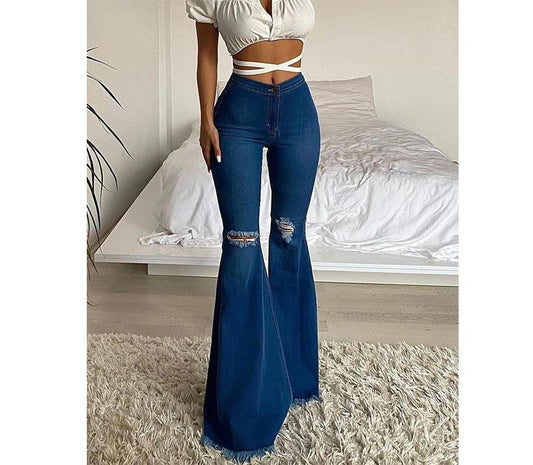 Mid Waist Slim-Fit Boot-Cut Ripped Jeans