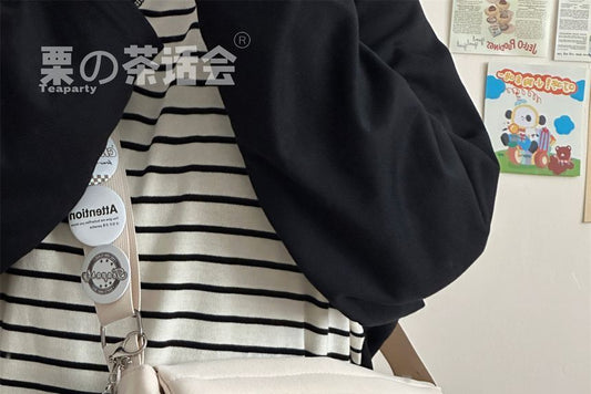 Stand Collar Striped Zip Jacket / Mid Rise Striped Midi A-Line Skirt