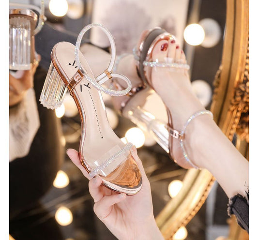 Rhinestone Ankle-Strap Chunky-Heel Sandals