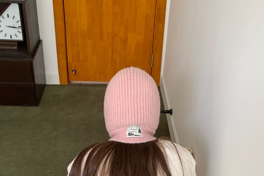 Plain Applique Lace-Up Ribbed Knit Balaclava