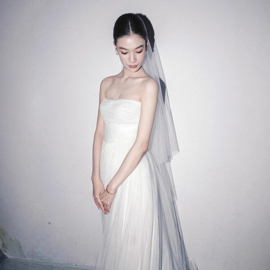 Plain Gathered Mesh A-Line Tube Wedding Gown