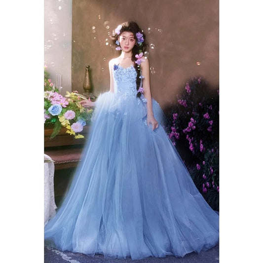 Strapless Floral Detail A-Line Evening Gown