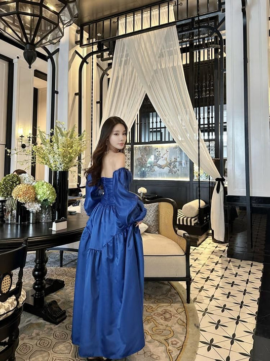 Off Shoulder Flower Detail A-Line Evening Gown
