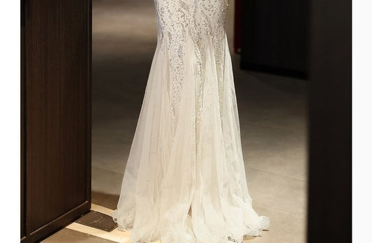Sleeveless Round Neck Plain Sequin Beaded A-Line Evening Gown