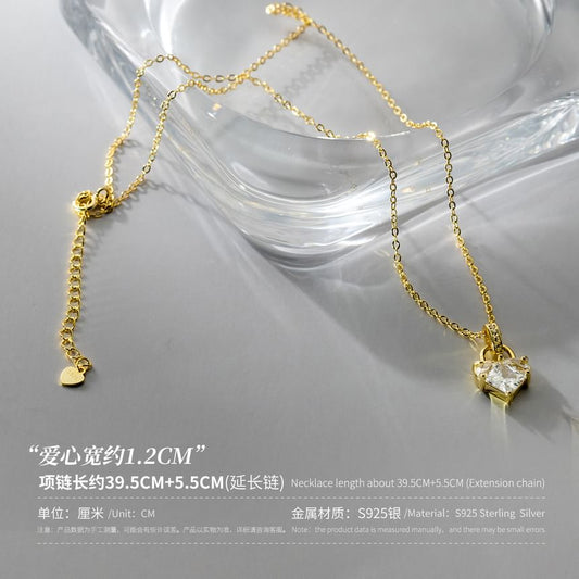 Heart Lock Rhinestone Pendant Sterling Silver Necklace