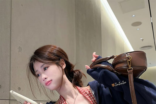 V-Neck Letter Embroidered Oversized Sweatshirt / Plaid Lace Trim Bow Cropped Halter Top