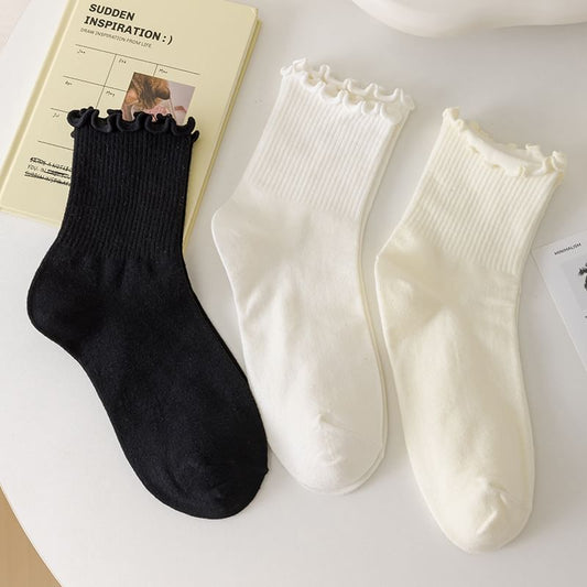 Plain Ruffle Trim Crew Socks
