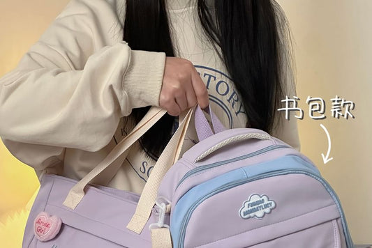 Letter Embroidered Multi-Pocket Tote Bag / Backpack / Bag Charm / Coin Purse / Set