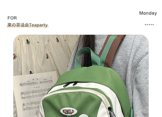 Applique Mesh Panel Multi-Pocket Backpack / Bag Charm / Coin Purse / Set