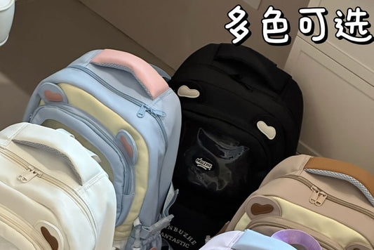 Cat Ear Color Block Backpack / Bag Charm / Set
