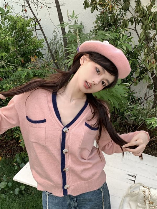 Embroidered Vest / Long-Sleeve Lace Perforated Knit Top / Set