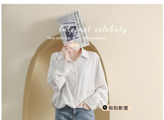 Mock Neck Plain Blouse / Mid Rise Hanfu Patterned Maxi A-Line Skirt / Necklace