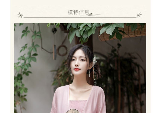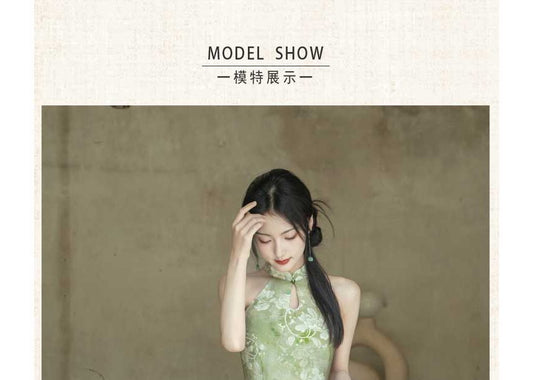 Set: Sleeveless Mandarin Collar Floral Print Keyhole Slit Midi A