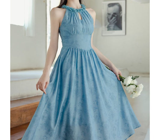 Spaghetti Strap Crew Neck Plain Midi A