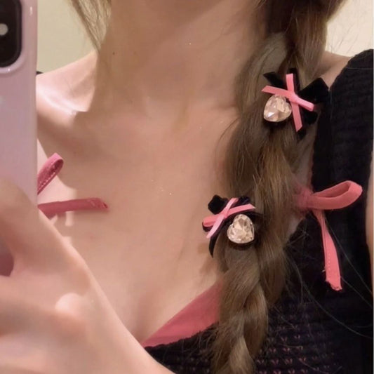 Set of 2: Ribbon Heart Rhinestone Hair Clip
