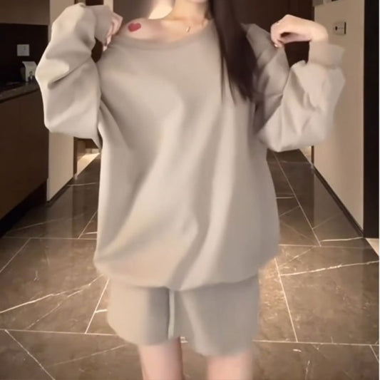 Set: Boatneck Plain Sweatshirt + Skort