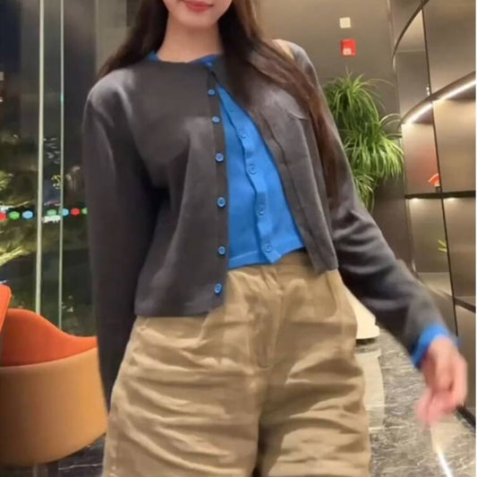 Round Neck Mock Two Piece Cardigan