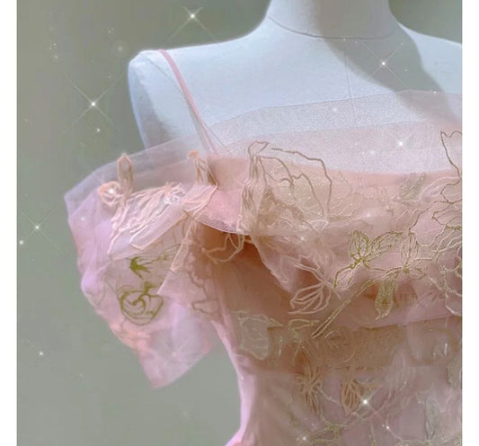 Gown Applique Mesh A-Line Tube Evening Butterfly