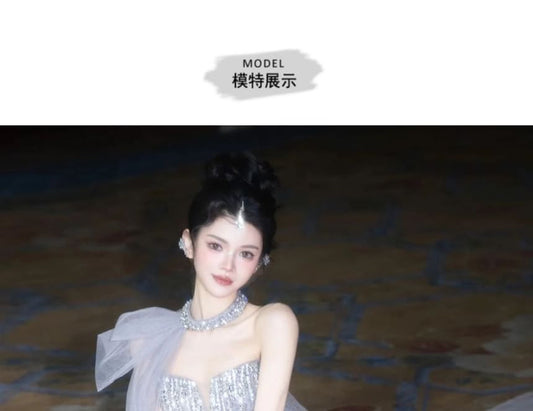 Gown Evening A-Line Mesh Tube Bow Plain Ruched