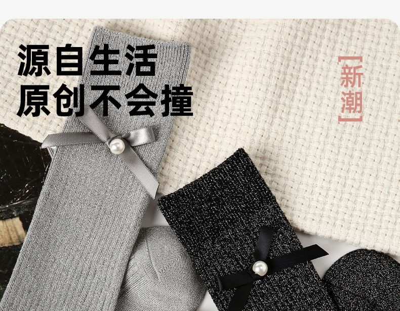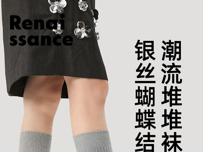 Bow Detail Glitter Mid-Calf Socks