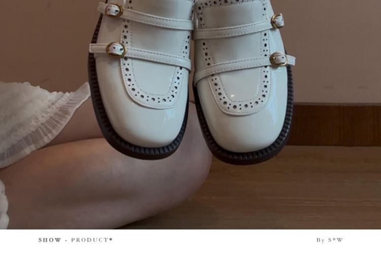 Buckled Faux Leather Chunky Heel Loafers