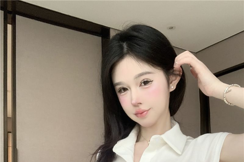 Cap Sleeve Collared Plain Flap Pocket Jersey Shirt