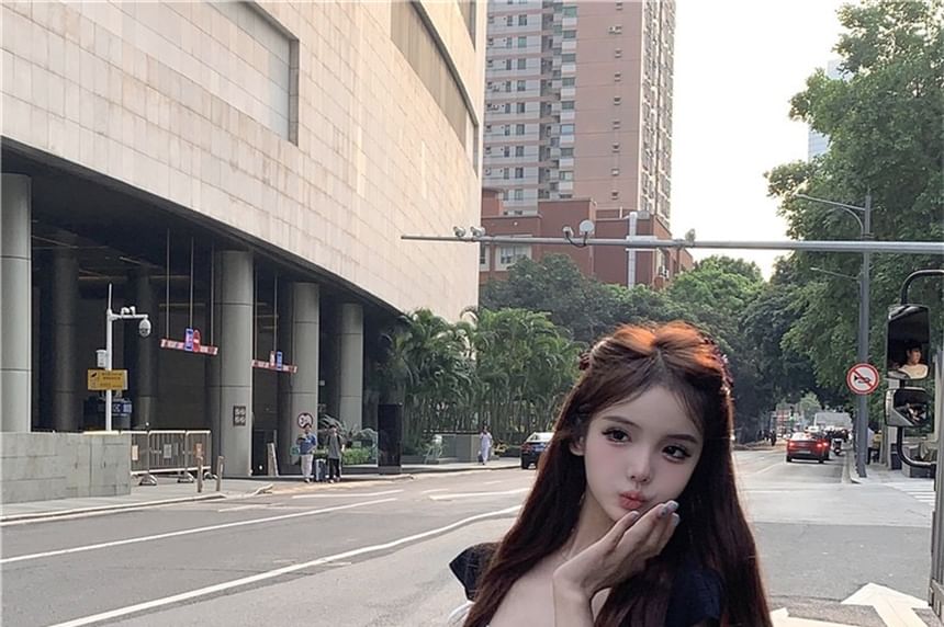Cap-Sleeve Contrast Trim Bow Crop Slim Fit T-Shirt
