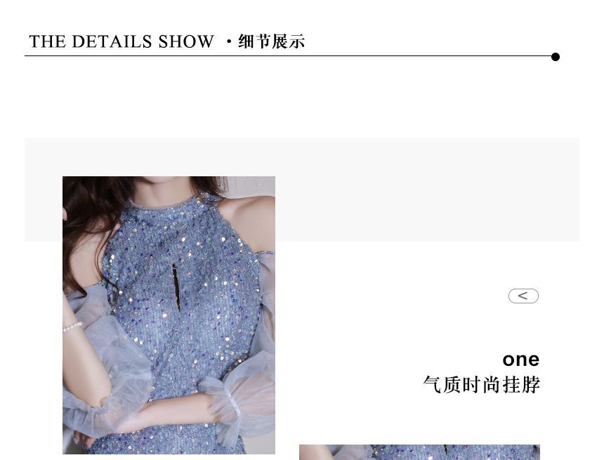 Cold-Shoulder Sequin Sheath Evening Gown