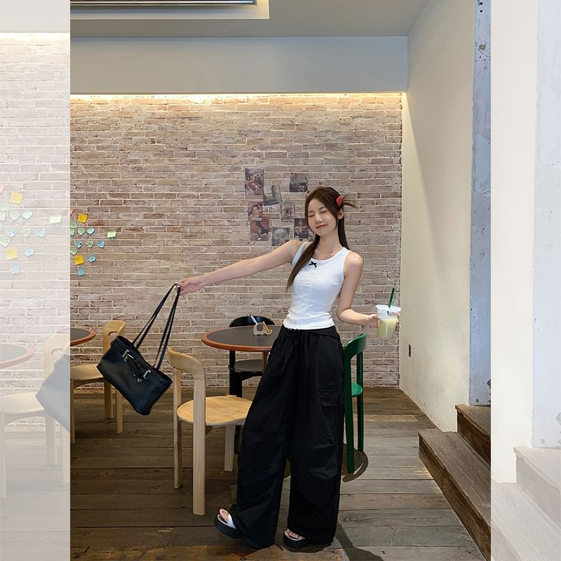 Crew Neck Bow Lace Panel Slim Fit Tank Top