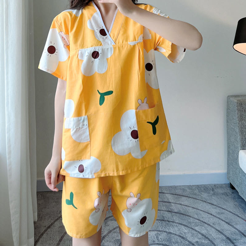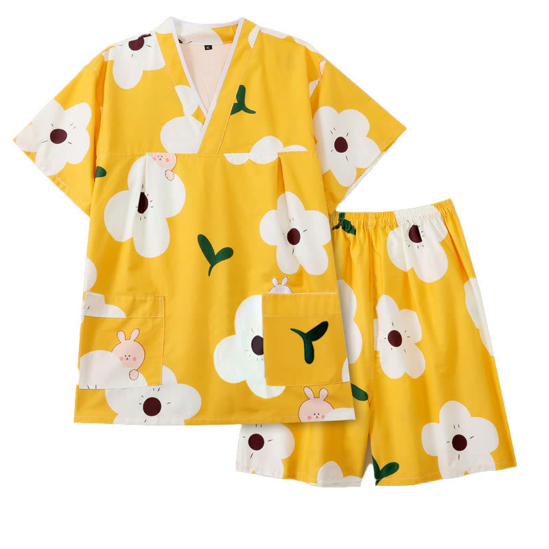Cet ensemble pyjama à imprimé fleuri composé d'un t-shirt à col en V et d'un short est parfait pour vos soirées de détente. Le tissu doux et respirant assure un confort maximal tandis que le design élégant vous fera sentir élégante et belle. Passez une bonne nuit de sommeil avec ce joli ensemble pyjama.