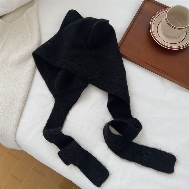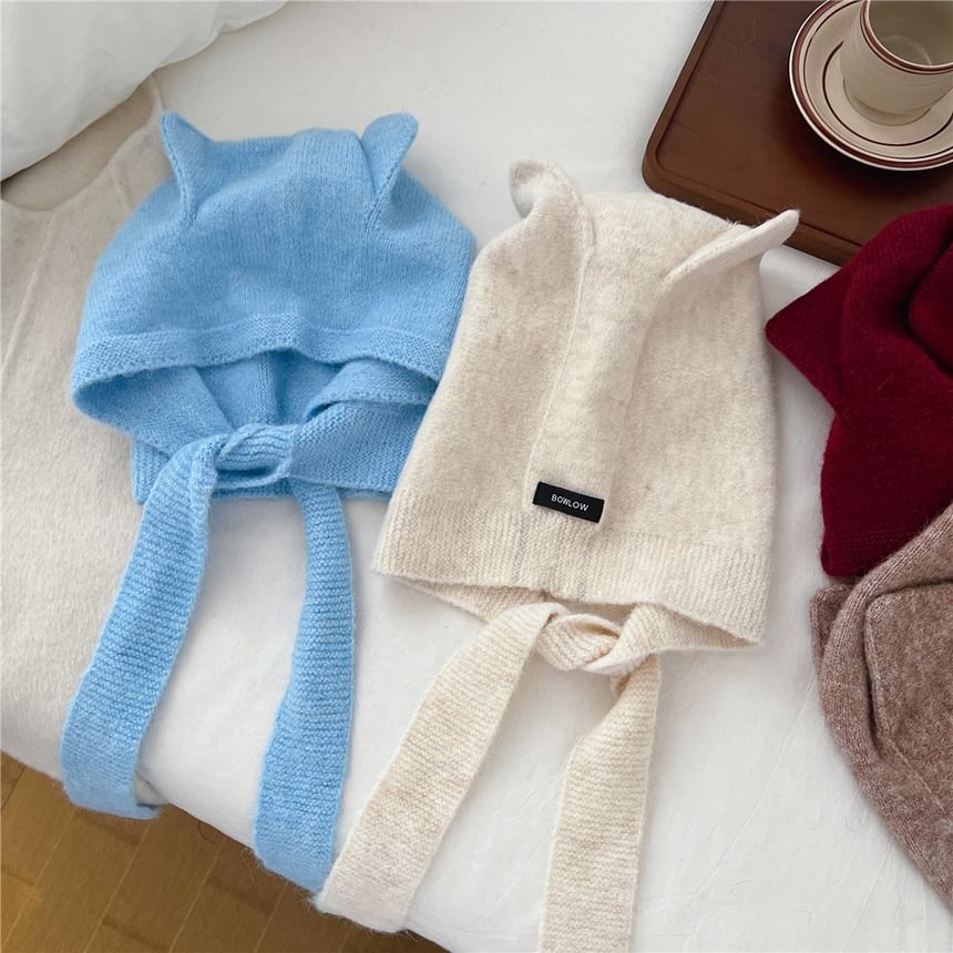 Ear Accent Knit Bonnet Hat